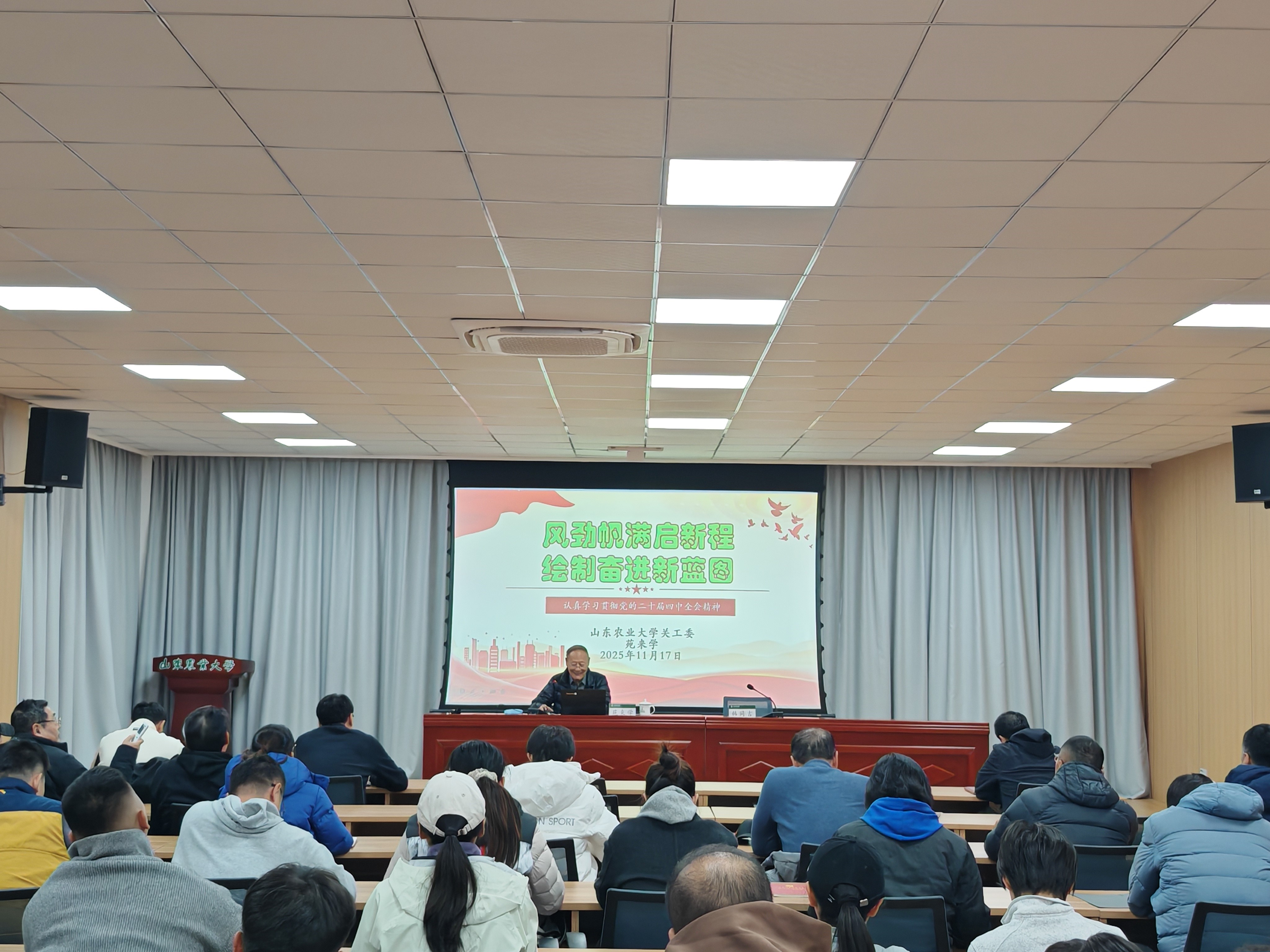为深入学习贯彻党的二十届四中全会精神,引导全院师生精准把握全会核心要义与实践要求,11月17日,学院邀请学校关工委副主任、山东省“本色家园”宣讲团成员苑来学教授作“风劲帆满启新程,绘制奋进新蓝图”辅导报告,学院党委书记韩同吉主持会议。