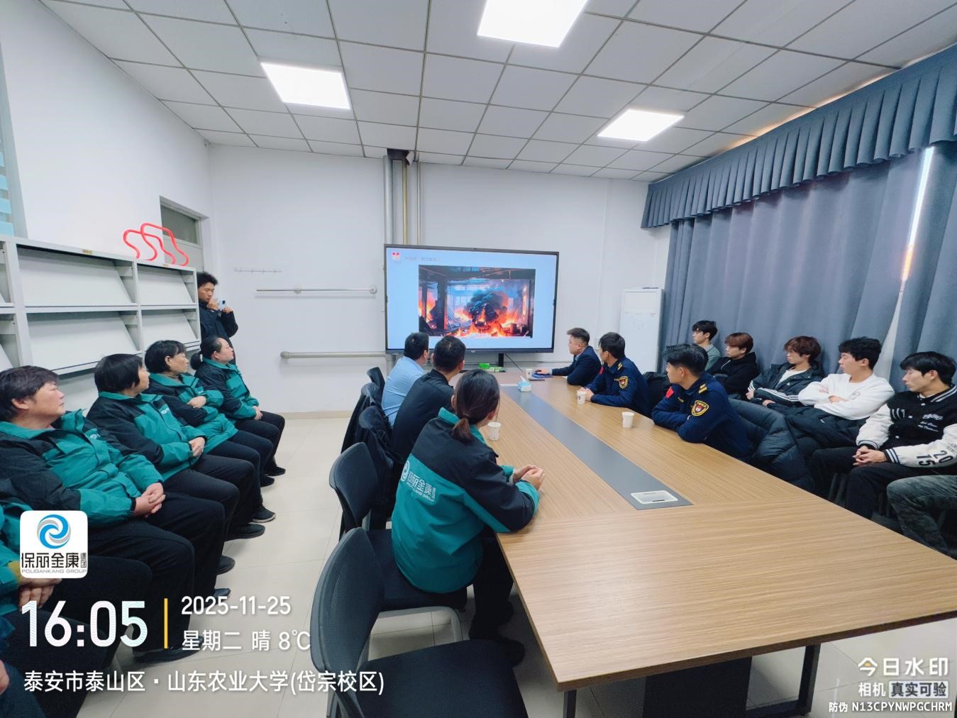 保利金康物业公司安全专员聚焦高校场景特点,通过火灾案例视频等形式,系统讲解火灾预防要点、初期火情扑救方法、火场逃生路线选择及报警要素,尤其针对体育场馆内器材存储区、运动场地电气设备等易引发火情的重点部位,细致解读日常巡查流程与隐患排查标准,让理论知识更贴合师生日常学习生活。